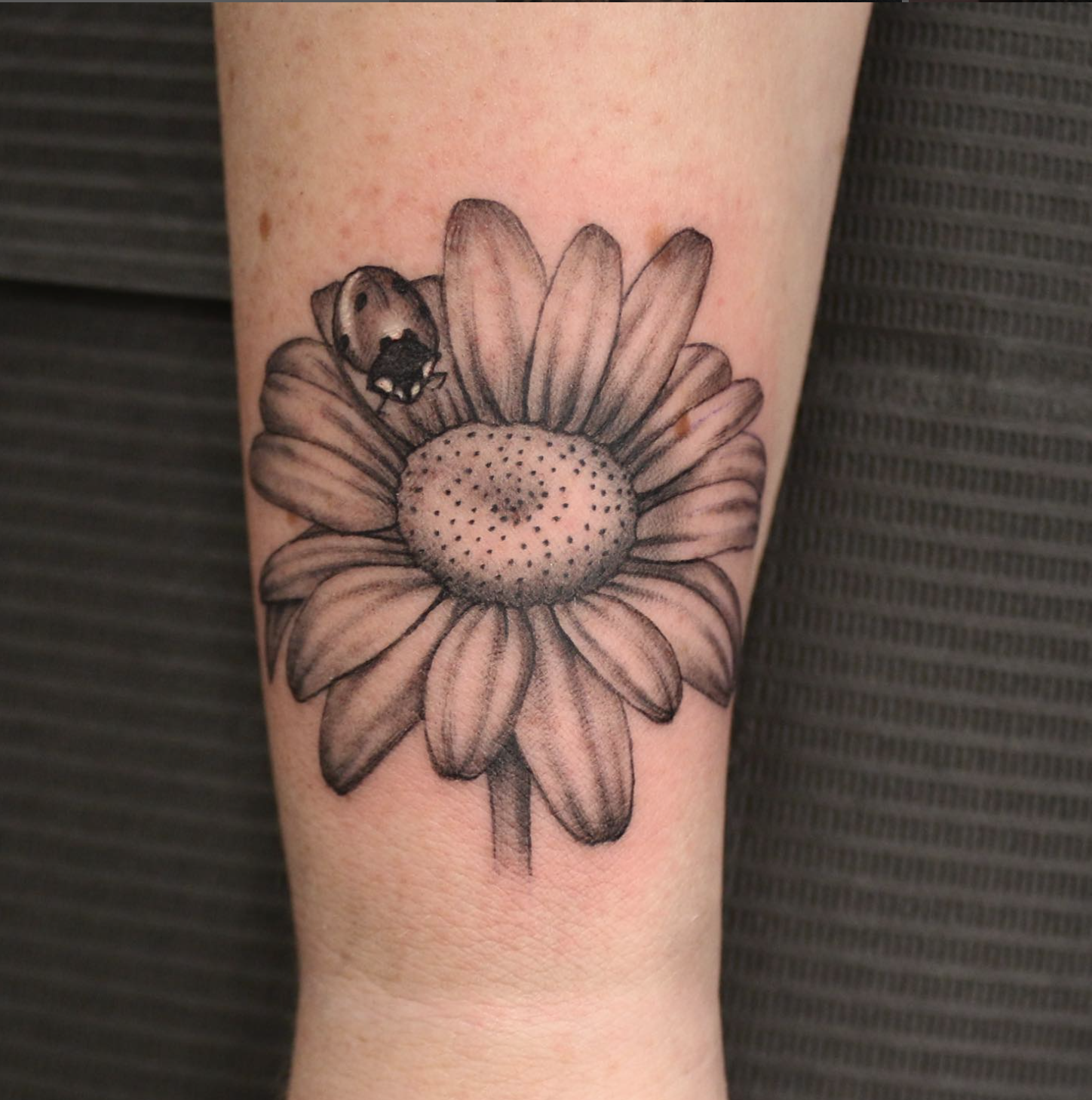 “Hello, my name is Mikayla Gutierrez (@mikaylamgutierrez). I am currently a resident artist at Body Art Gallery. I specialize in black and grey realism. Anything from flowers to portraits, I love to make objects from nature come to life on skin. Hit me up for your next realism piece!”